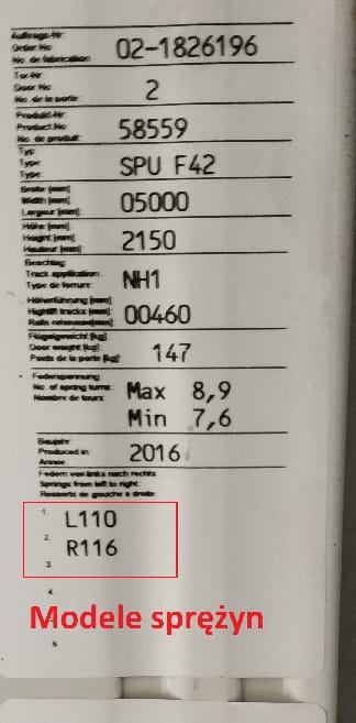 Symbol sprężyny można znaleźć na tabliczce znamionowej bramy.